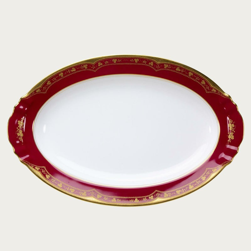金のエッチングが華やかで、高貴な赤が美しいテーブルウェアシリーズ「アレキサンドリーヌ」。外国からの賓客を迎えるような、気品溢れる食卓を演出致します。
