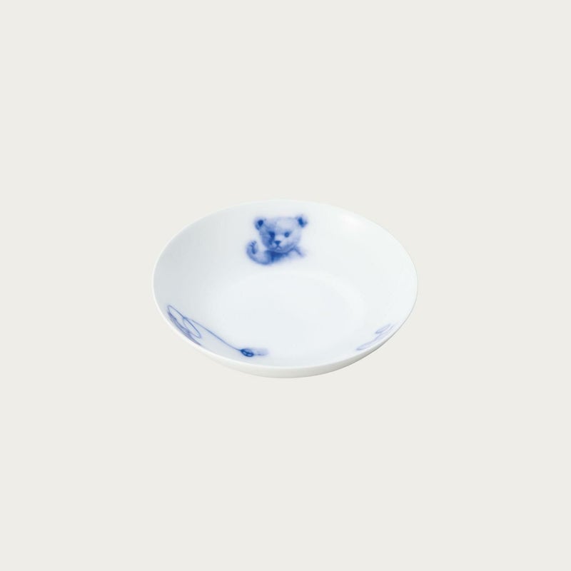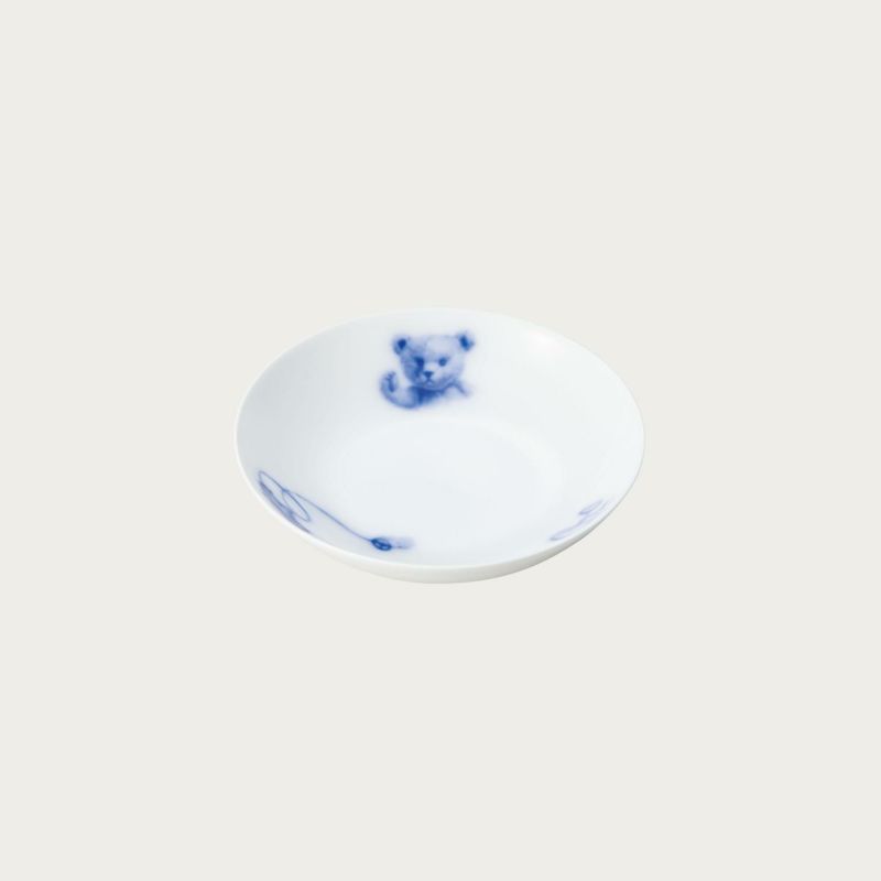世界中で愛されているテディベアの愛くるしさをそのまま白磁にうつした温もりのある絵柄です。岡染めブルーのグラデーションがふんわり優しい雰囲気を醸し出します。