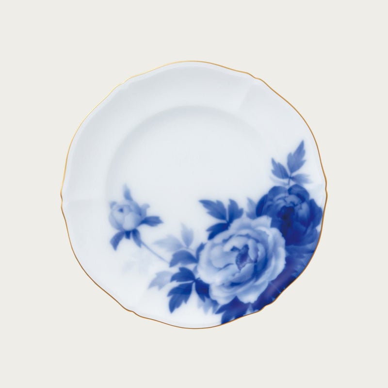 絹のような花びらを幾重にも重ねる美しいぼたんの花。“花の王”とも呼ばれる富貴の象徴です。大倉陶園独自の技法「岡染め」による紺青のグラデーションが、高貴な印象を深めています。