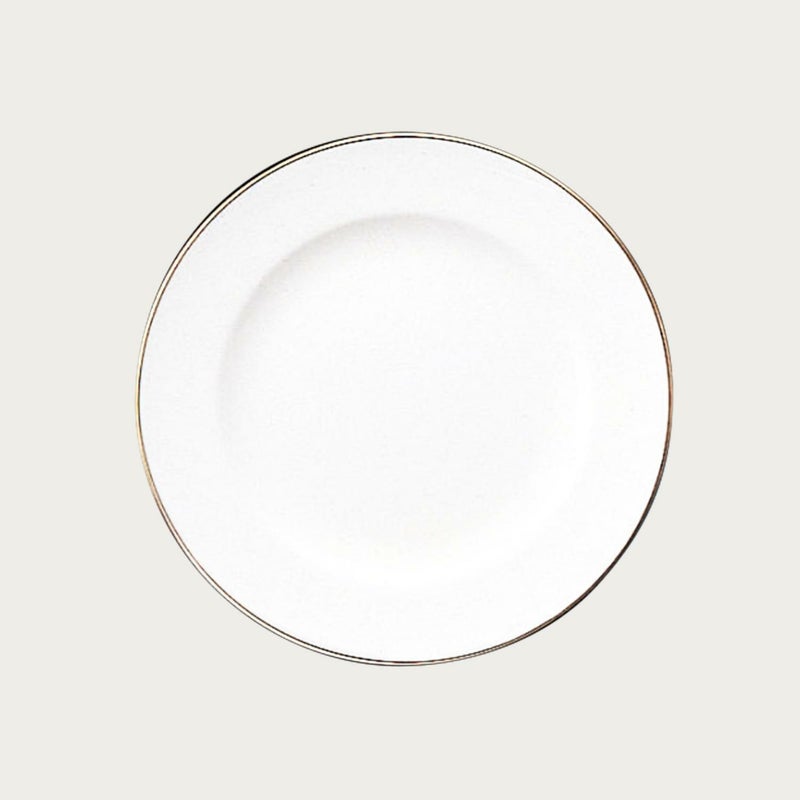 金縁のみのシンプルなデザイン「ゴールドライン」は、凛とした気品を漂わせます。白磁に金縁が煌きを添える静謐なデザインはお料理を最大限に引き立てることでしょう。