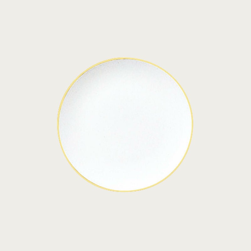 金縁のみのシンプルなデザイン「ゴールドライン」は、凛とした気品を漂わせます。白磁に金縁が煌きを添える静謐なデザインはお料理を最大限に引き立てることでしょう。