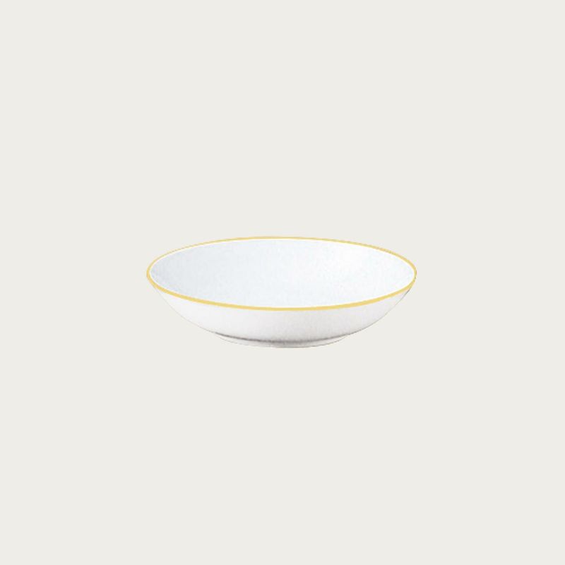 金縁のみのシンプルなデザイン「ゴールドライン」は、凛とした気品を漂わせます。白磁に金縁が煌きを添える静謐なデザインはお料理を最大限に引き立てることでしょう。