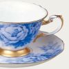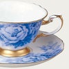 絹のような花びらを幾重にも重ねる美しいぼたんの花。“花の王”とも呼ばれる富貴の象徴です。大倉陶園独自の技法「岡染め」による紺青のグラデーションが、高貴な印象を深めています。