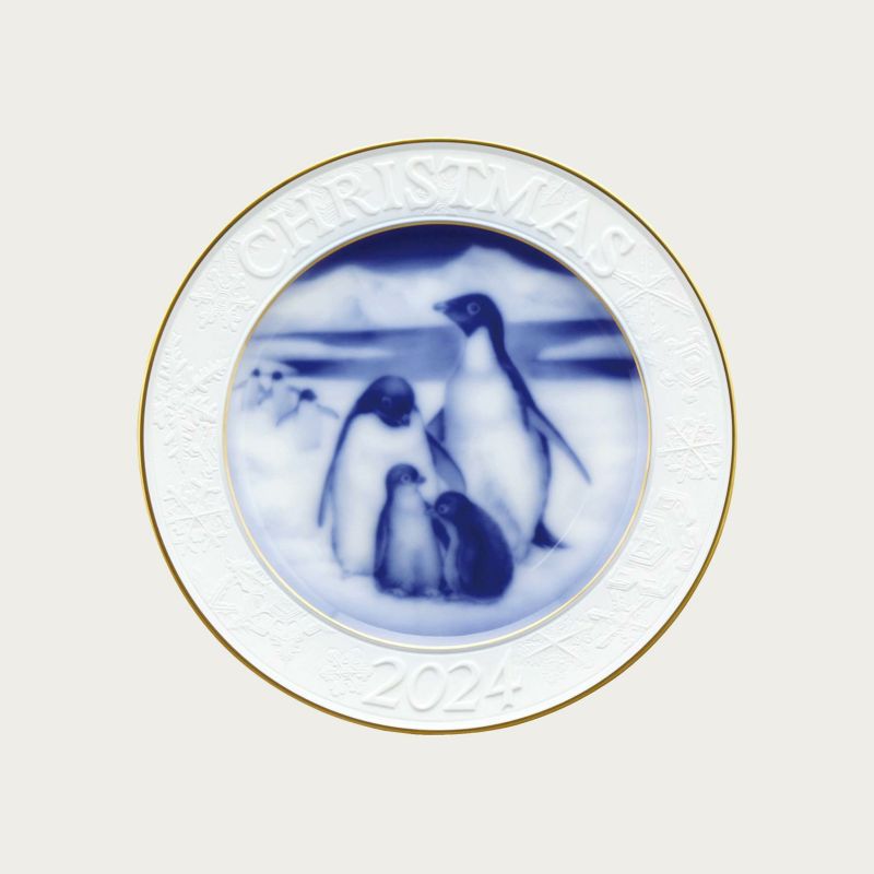 5. [大倉陶園]クリスマス2024年 クリスマスプレート「アデリーペンギン」(皿立て付)