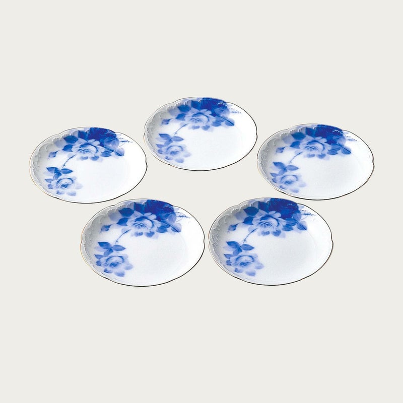 5. [大倉陶園]ブルーローズ(8011) 15cm銘々皿揃(5枚)