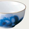 電子レンジ対応のシリーズ。茎をなくしたデザインにすることで、紺青のバラと白磁のコントラストを強調しています。