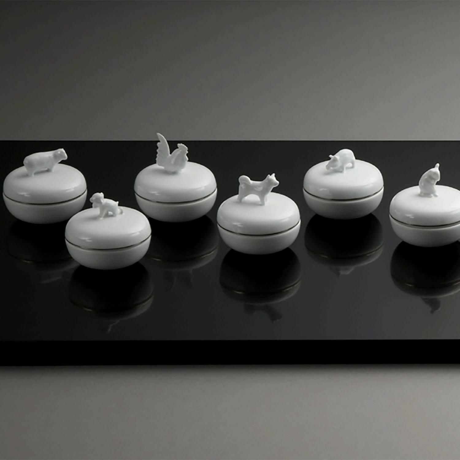 品のよい贈り物として人気の高い干支蓋物(香合)。珠玉のように美しい白磁の香合は、中を純度の高い金彩を、そして蓋の内側には干支文字の落款を施しています。