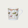 メリーゴーランドの中の9頭の木馬が、それぞれに異なる表情を見せて楽しく飛び回る様を、色とりどりの上絵と金彩で表現しました。