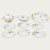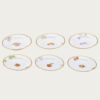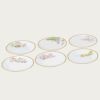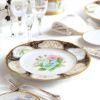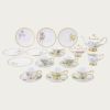 サービスプレートは廻(めぐ)る季節を6枚に表現し、ミート皿には木々の花を、フィッシュ皿には夏の花々を描き、デザート皿には野生の蘭を、ティーセットには山野草を、アイテムごとにテーマを設け花々を構成した壮大なスケールの逸品です。