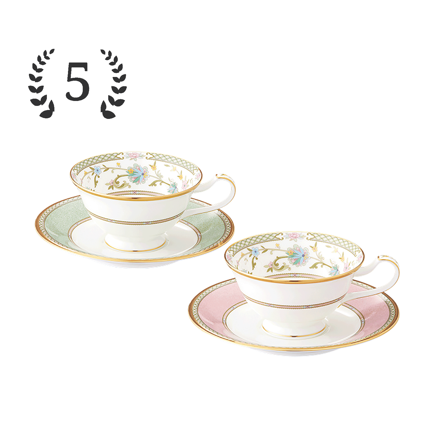 ■商品名:ヨシノ カップ&ソーサーペア(グリーン・ピンク)