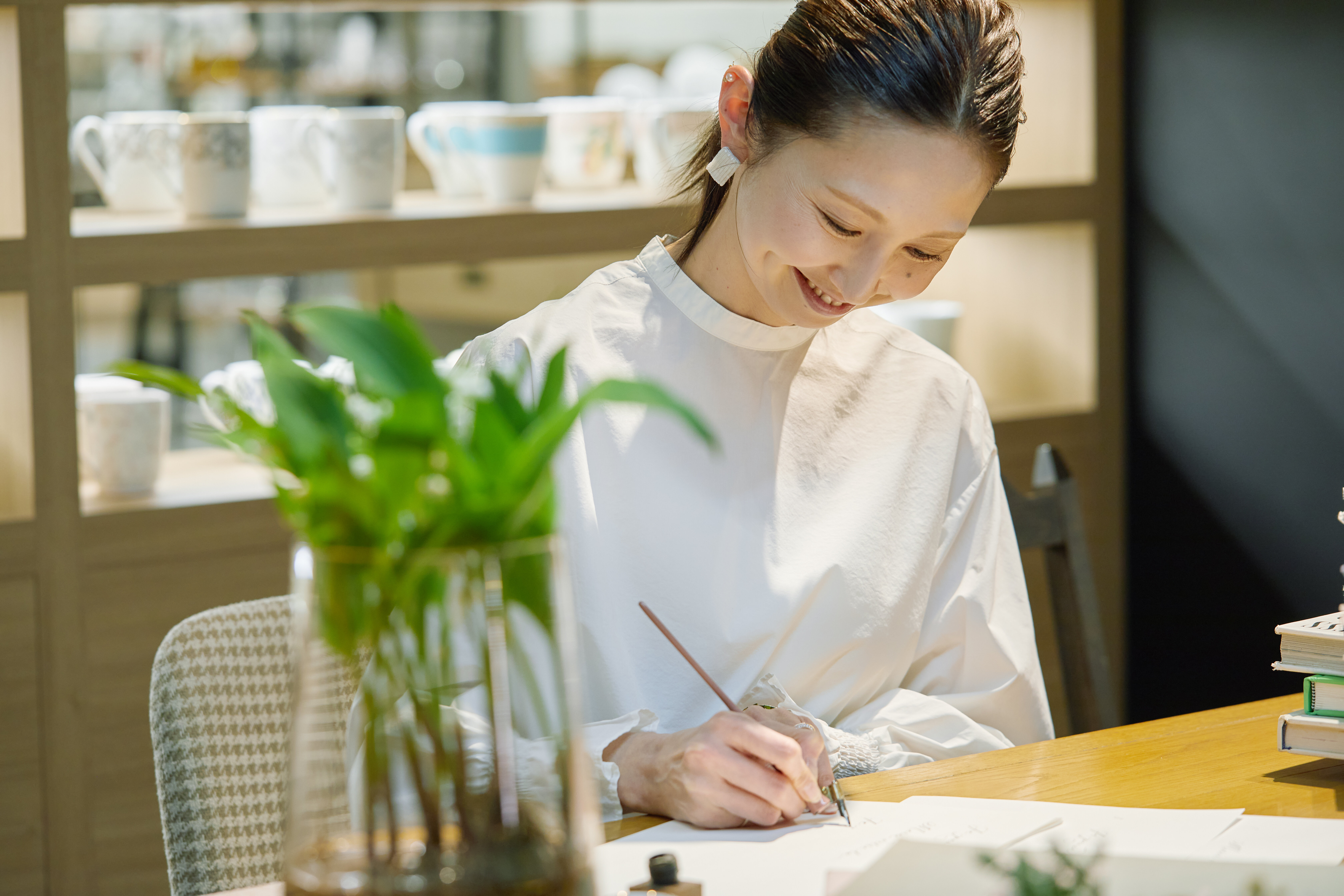 恵美さんが綴る繊細で美しい文字を、そのままマグカップの上に表現した「メッセージマグカップ」を店頭で手に取ってご覧いただけます。