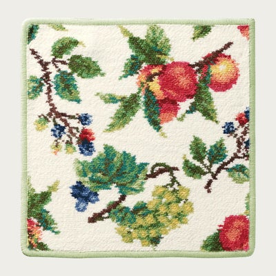 オーチャードガーデンをイメージしたハンカチ。果物とグリーンの柄がナチュラルで素敵です。縁の色も淡いグリーンで癒されます。タオルも納得のフェイラー。手触りよく水分をよく吸います。おすすめです。