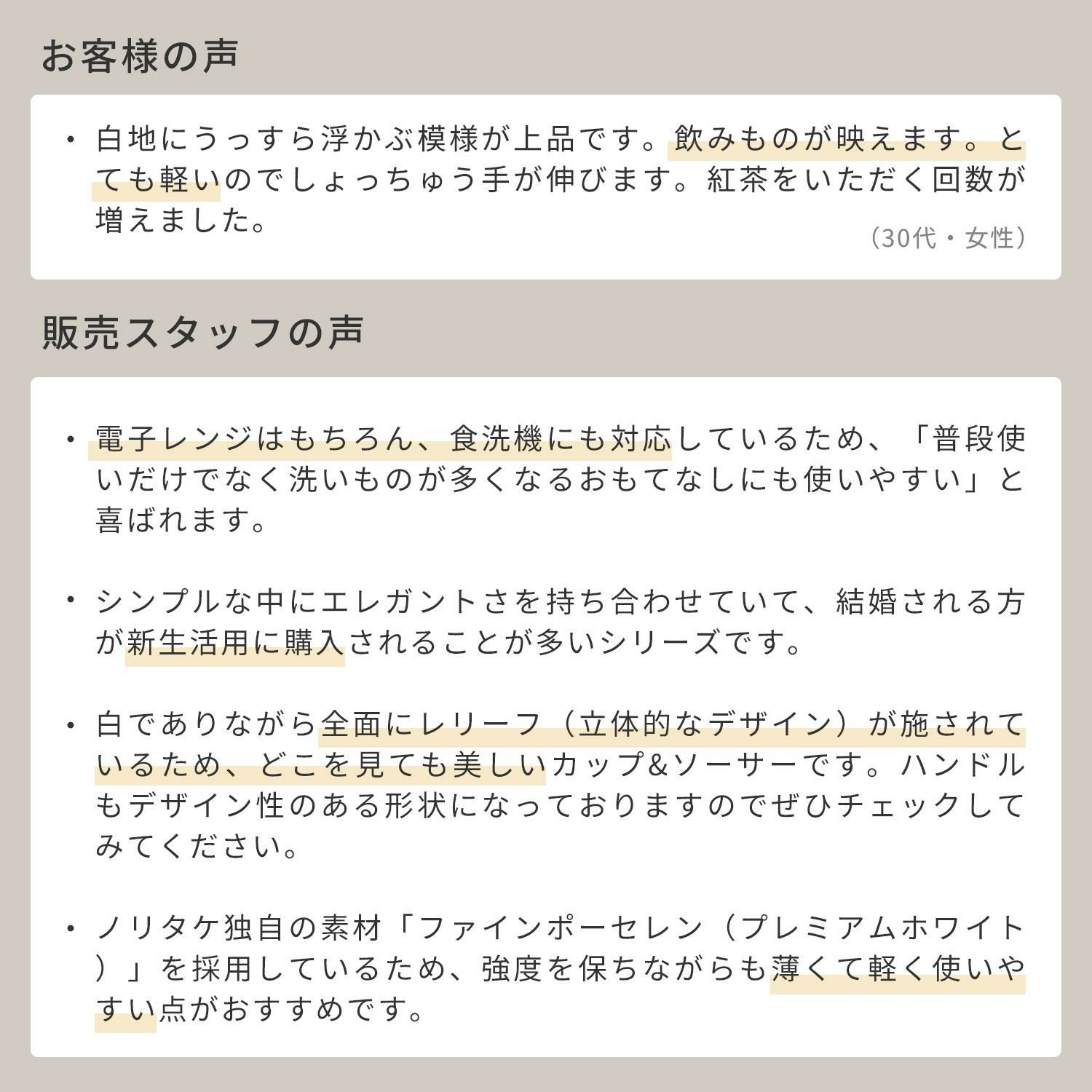 • 軽い食器