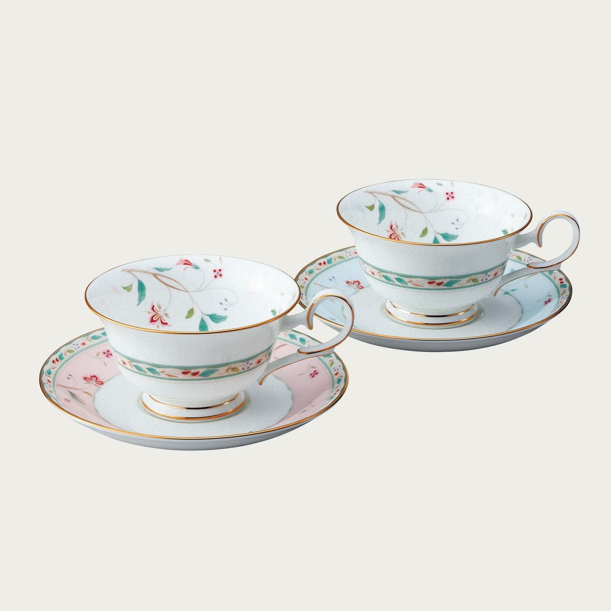 レースウッドゴールド カップ&ソーサーペア(ブルー・ピンク)